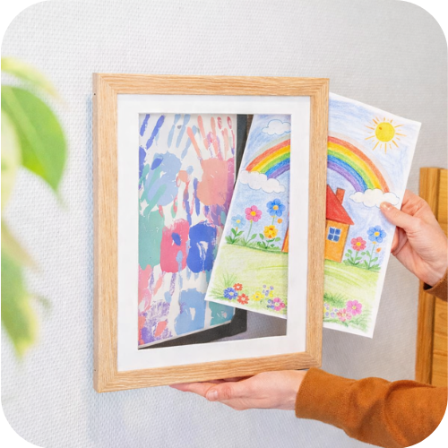 Un système d'ouverture facile, un design soigné, un moment de fierté partagé... chaque cadre permet de transformer les dessins du quotidien en véritables œuvres d'art à admirer.